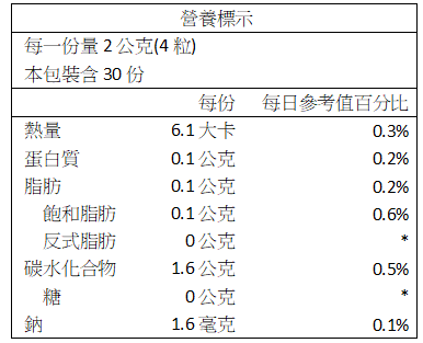 建議用量 : 每天4粒,多食無益。